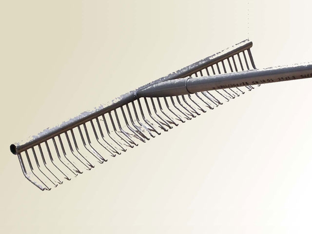 Rastrello per la pulizia più accurata della spiaggia. Realizzato con tubo Ø18 mm in acciaio inox AISI 304 e i denti in tondo trafilato Ø4 mm in acciaio inox AISI 304. Lo spazio tra i denti è di 7 mm.